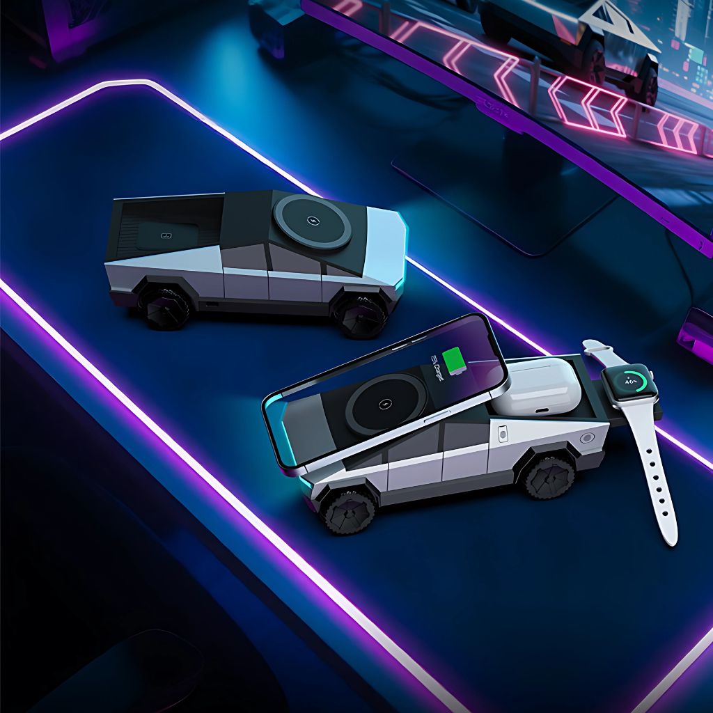 CyberDock+ Wireless Charger – Cybertruck-inspired 3-in-1 design