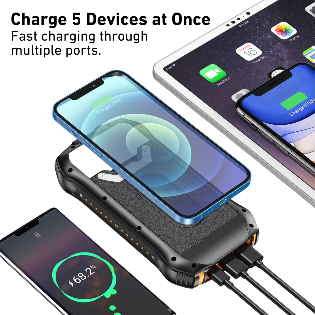 Whether you're off-grid, camping, or facing a power outage, this high-capacity solar bank keeps your essentials running and your phone connected.